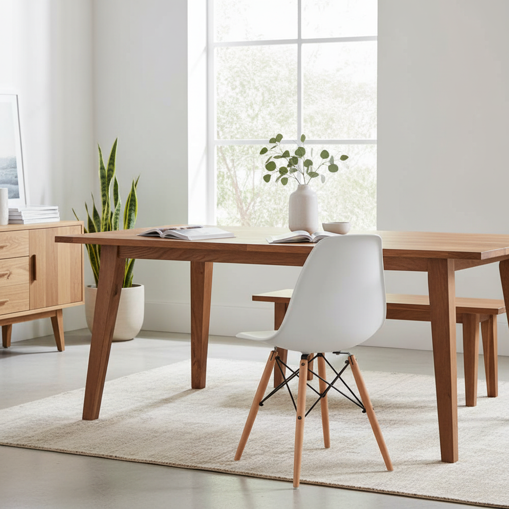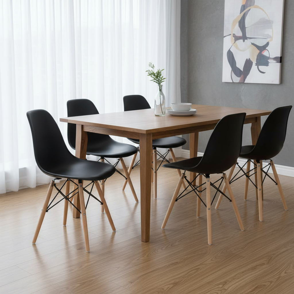 Experimenta la fusión perfecta entre funcionalidad y estilo con la Silla Eames. Sus patas de madera de haya sólida seleccionada garantizan resistencia y durabilidad, mientras que el asiento de polipropileno engrosado ofrece una superficie resistente a deformaciones y arañazos, manteniendo su aspecto impecable a lo largo del tiempo.