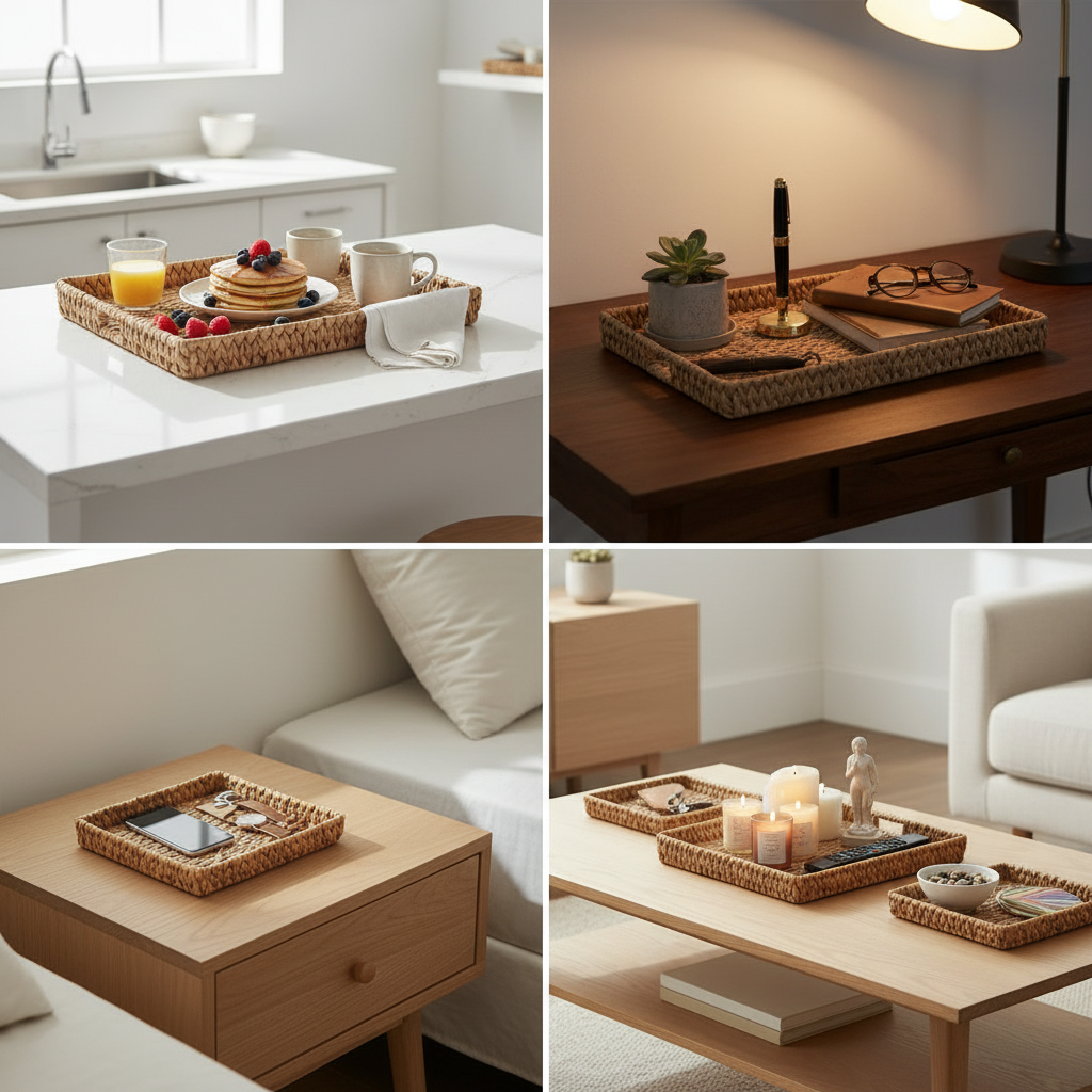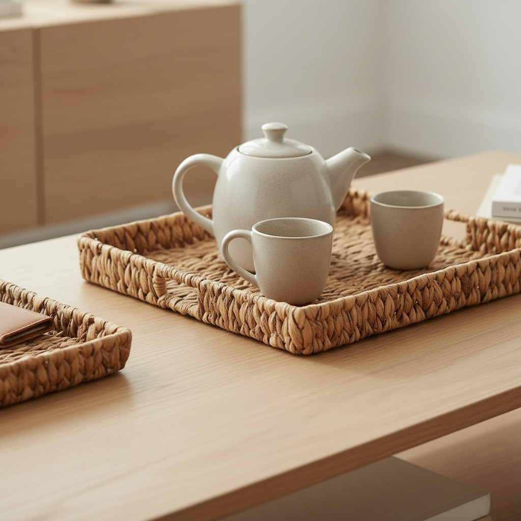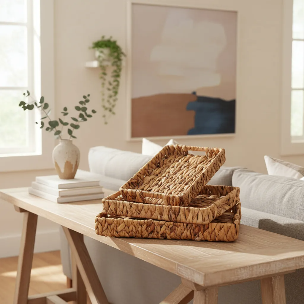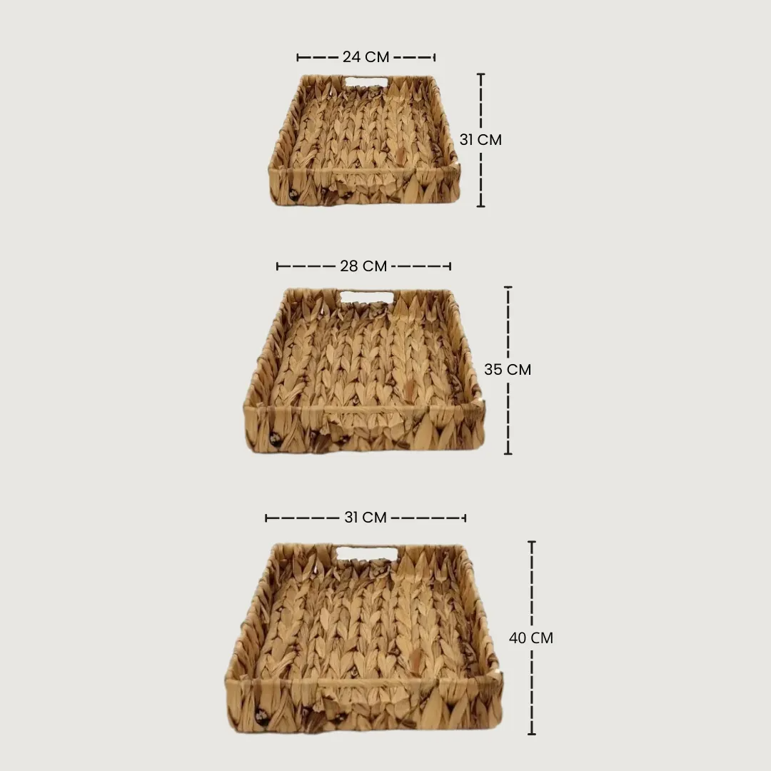 Set X3 Bandejas Fibras Naturales Rectangular Jacinto De Agua