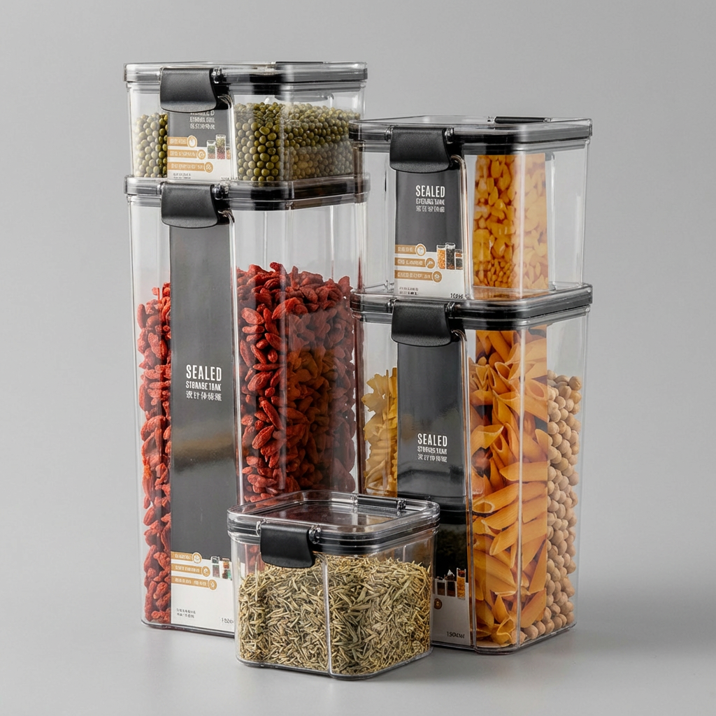 Set de 5 recipientes de alimentos transparentes , ideales para mostrar y conservar cereales, aperitivos y más.