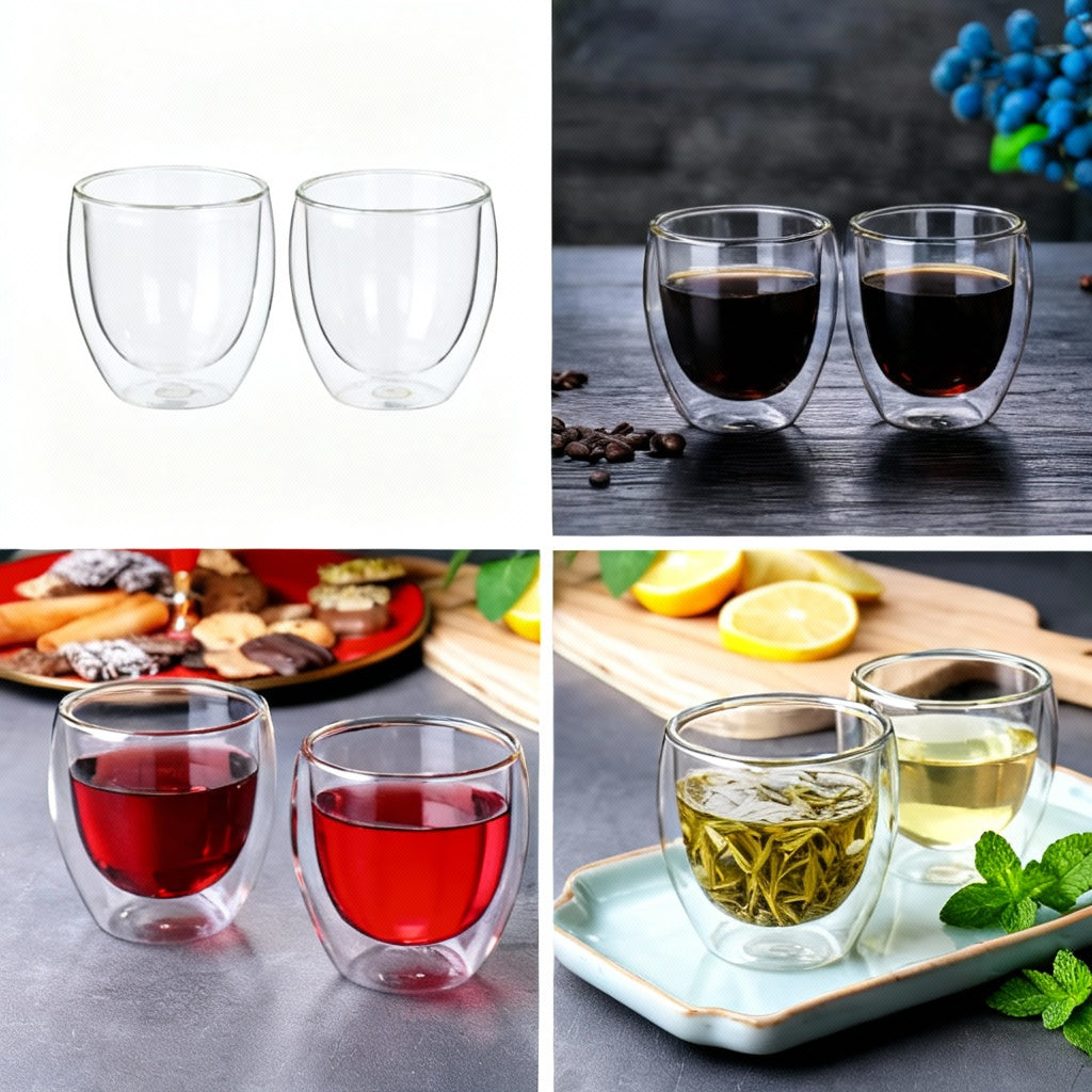 Set De 2 Vasos De Vidrio Doble Pared 80 ml