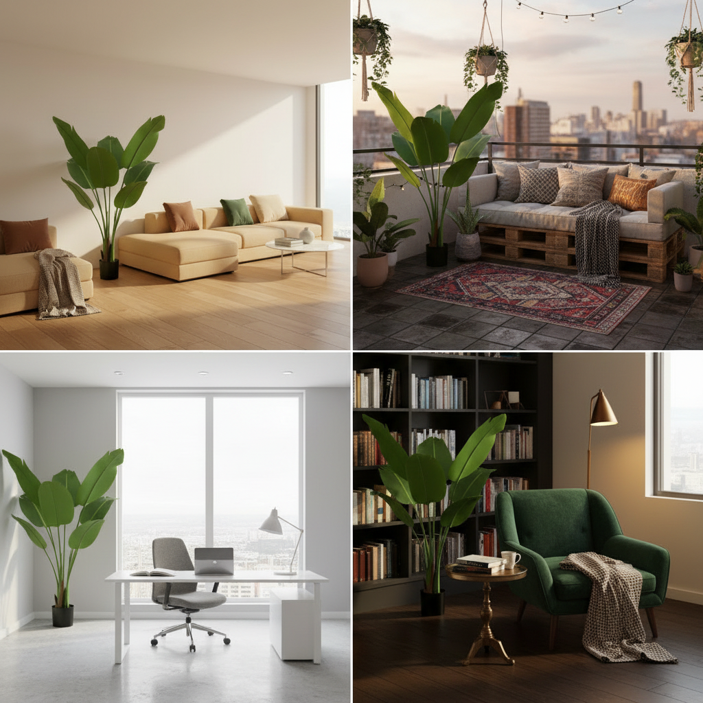 Añade un toque natural y fresco a tu hogar con esta planta artificial tipo banano de 160 cm de altura. Su diseño realista y frondoso es perfecto para decorar cualquier espacio, aportando estilo sin necesidad de mantenimiento. Ideal para salas, oficinas o cualquier rincón que necesite un toque verde.