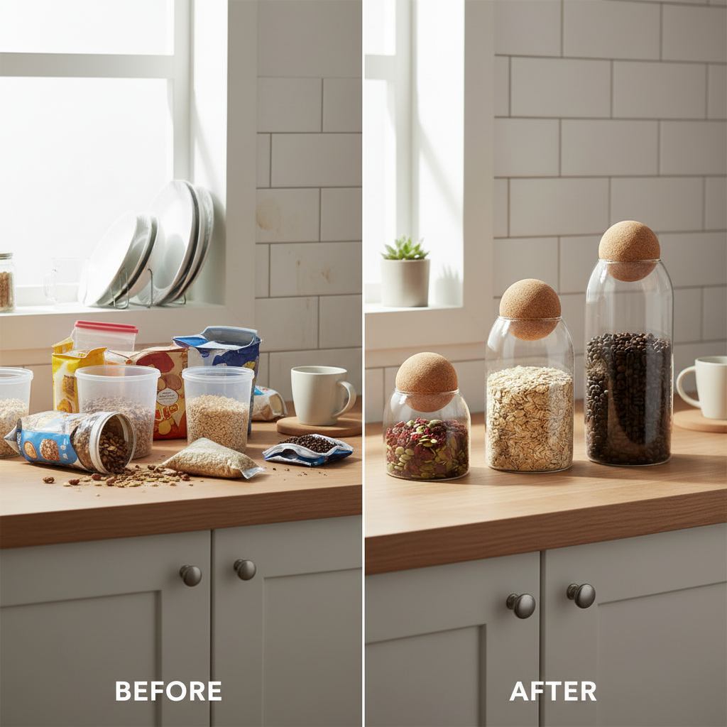 Con estos frascos, no solo optimizarás el espacio en tu hogar, sino que también añadirás un toque de estilo a tu cocina. La combinación de vidrio y corcho no solo es funcional, sino que también aporta un aire natural y acogedor a tu entorno. Descubre la forma más práctica y estética de organizar tus alimentos y otros artículos con este set de frascos de vidrio.
