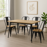 Juego de Comedor Tolix Mesa 120 X 70 CM + 4 Sillas Tolix Con Madera