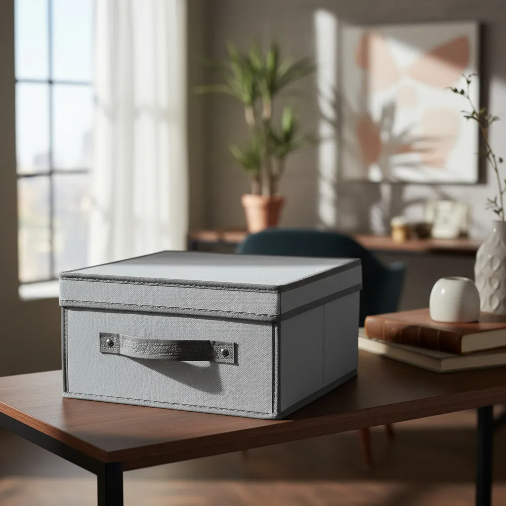 Caja Organizadora De Tela Rígida Con Tapa 30x30x15cm