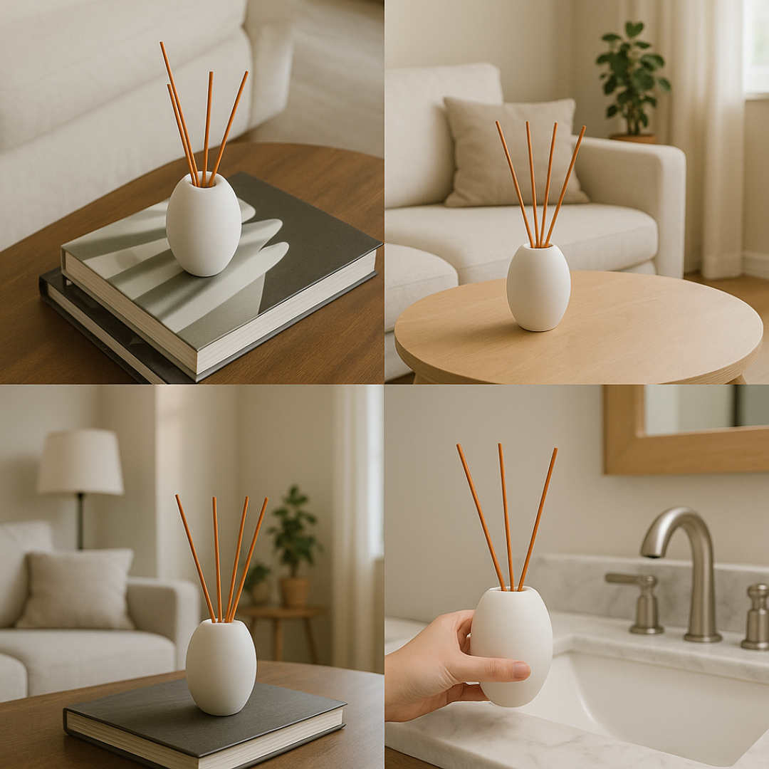 Incluye varillas difusoras que liberan el aroma de forma constante y uniforme durante varias semanas. El envase de diseño minimalista combina con cualquier estilo de decoración, aportando un toque moderno y cálido al ambiente.