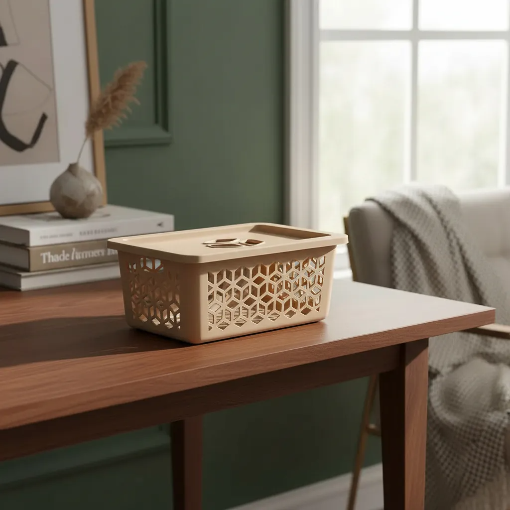 Caja Cesto Canasto Organizador Con Tapa Plástico Diseño M Uz