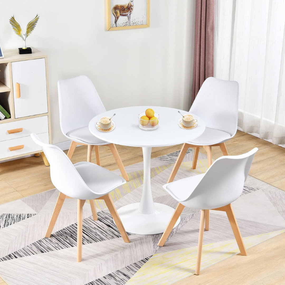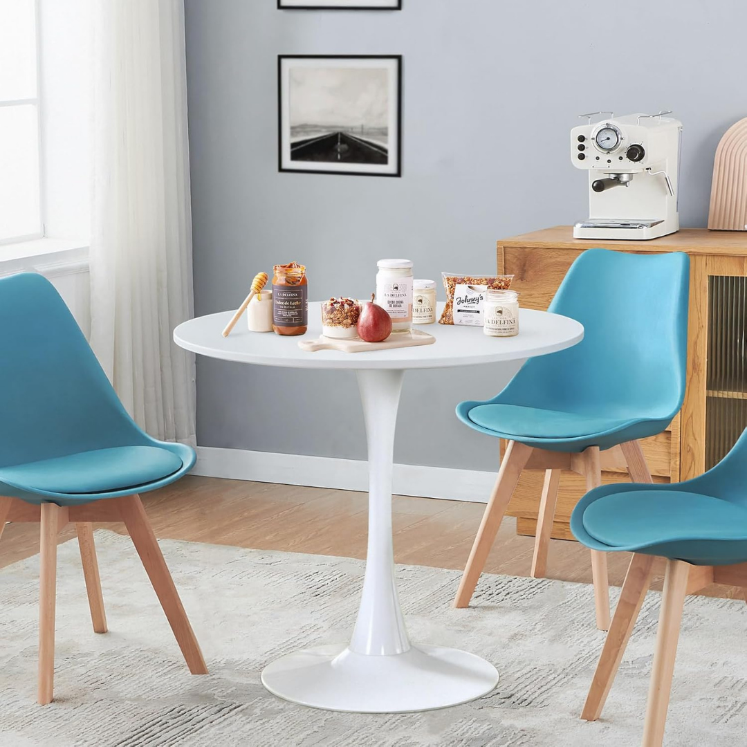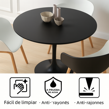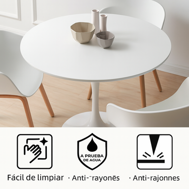 - Diseño: Redondo, funcional y versátil, ideal para comedores pequeños o medianos.