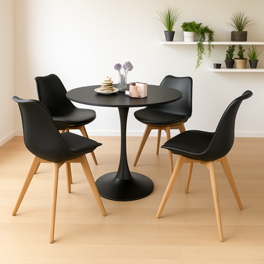La Mesa Tulip Redonda Homilu destaca por su diseño moderno, líneas limpias y una estética que aporta elegancia a cualquier ambiente. Su tablero está fabricado en madera MDF laqueada satinada de 18 mm, ofreciendo una superficie lisa, resistente y de alta durabilidad.