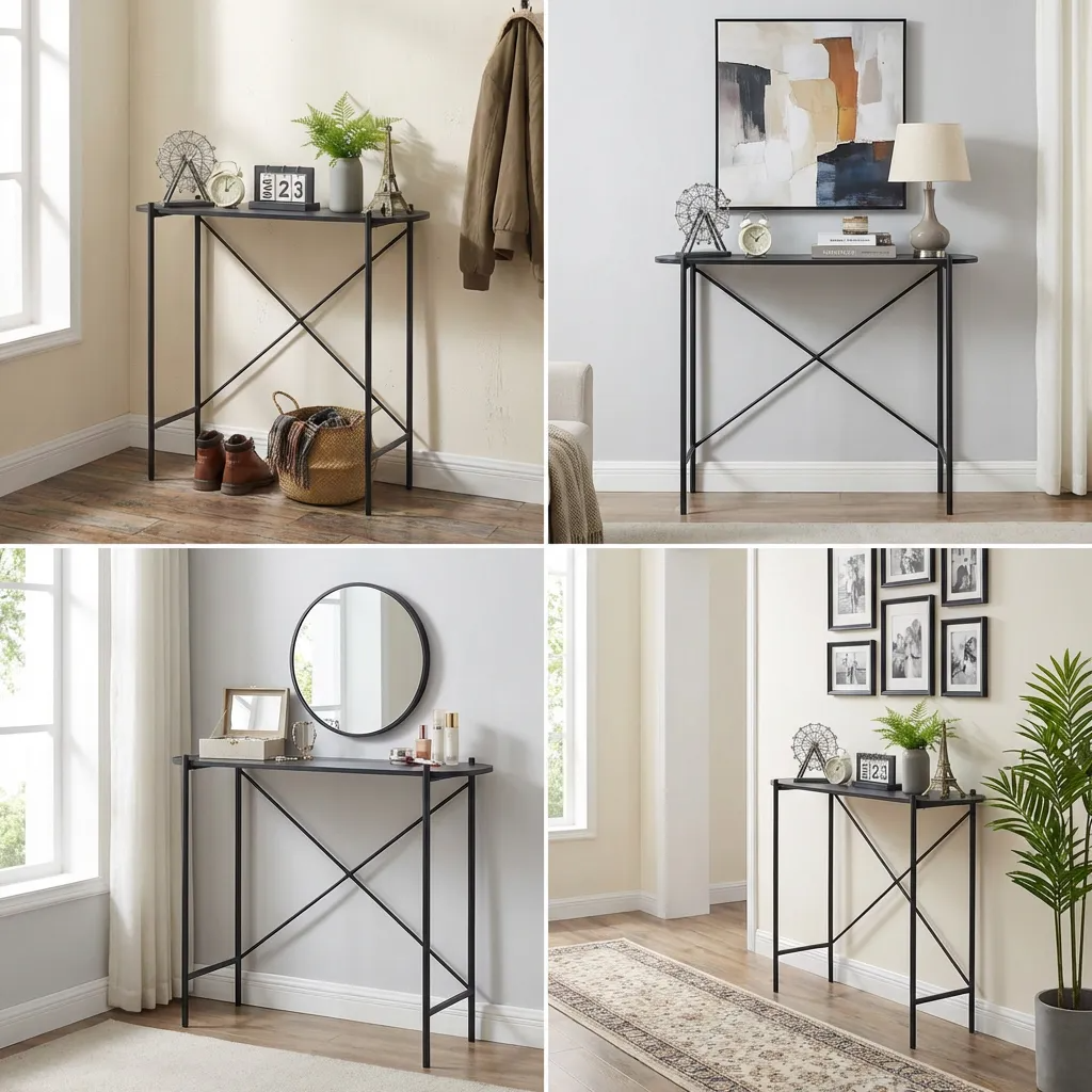 Práctica para apoyar objetos decorativos, llaves o accesorios de uso diario.