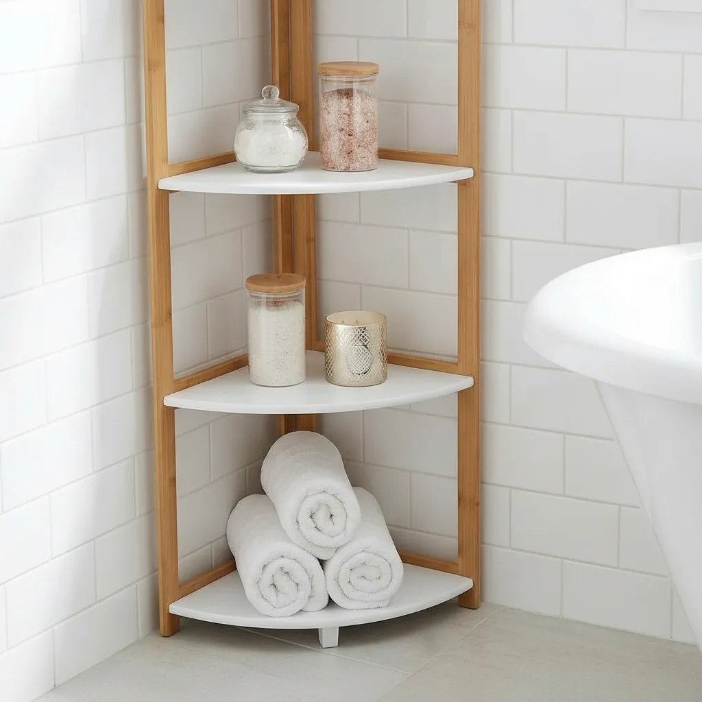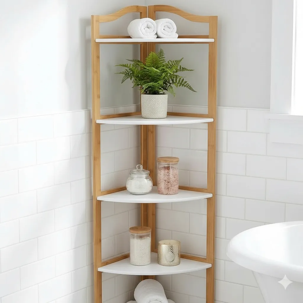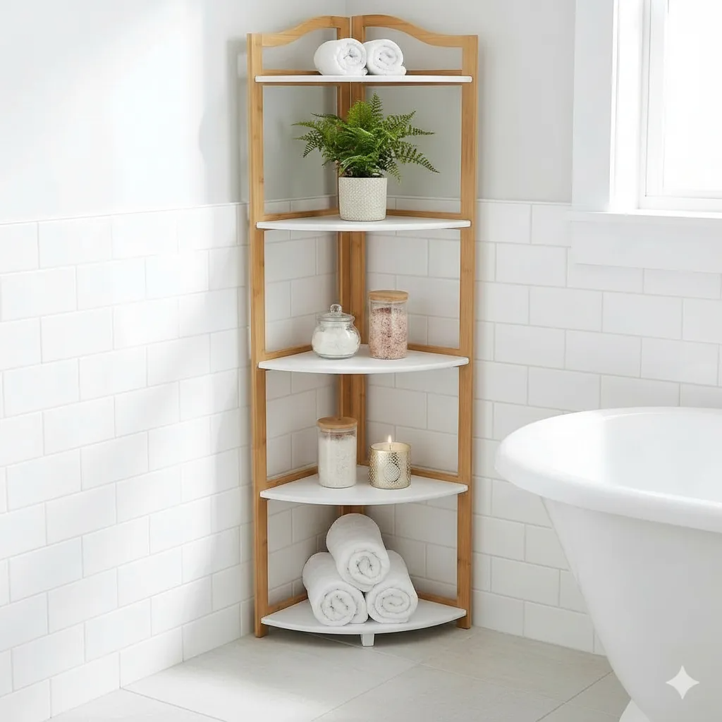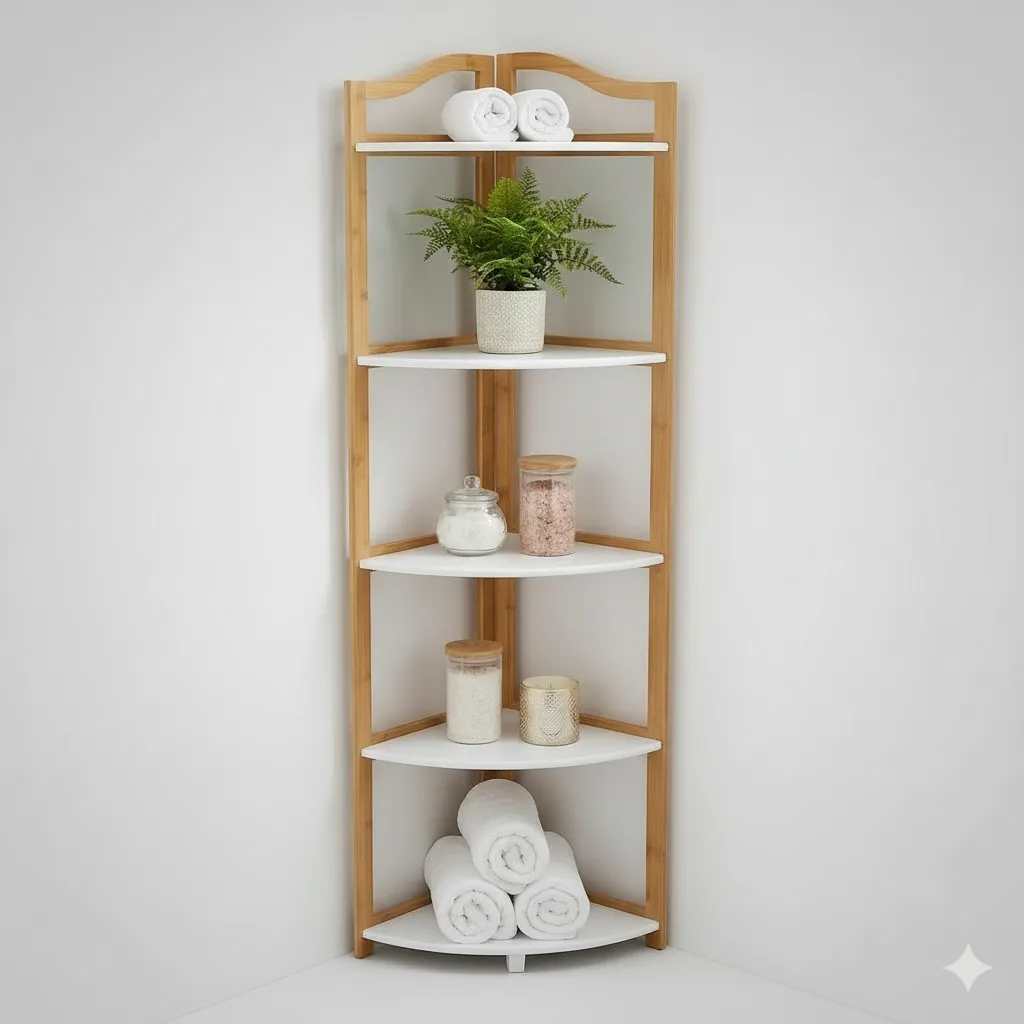 Mueble Rack Esquinero Repisa 5 Estantes Bambú Blanco