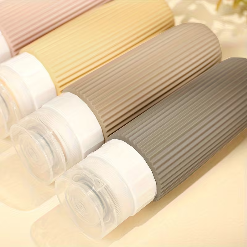 Organizá y transportá tus líquidos de forma práctica y segura con este set de recarga de botellas de silicona antifugas, ideal para viajes, gimnasio, uso diario o equipaje de mano.