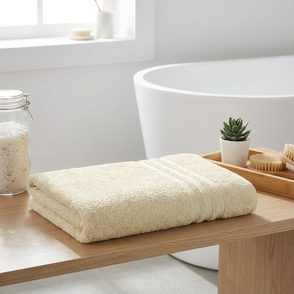 Con unas medidas de 65x130cm, es una gran opción para quienes buscan una toalla de baño compacta y fácil de guardar. Disponible en diferentes colores, es perfecto para complementar la decoración de tu baño.