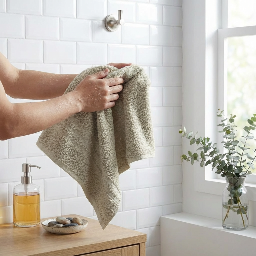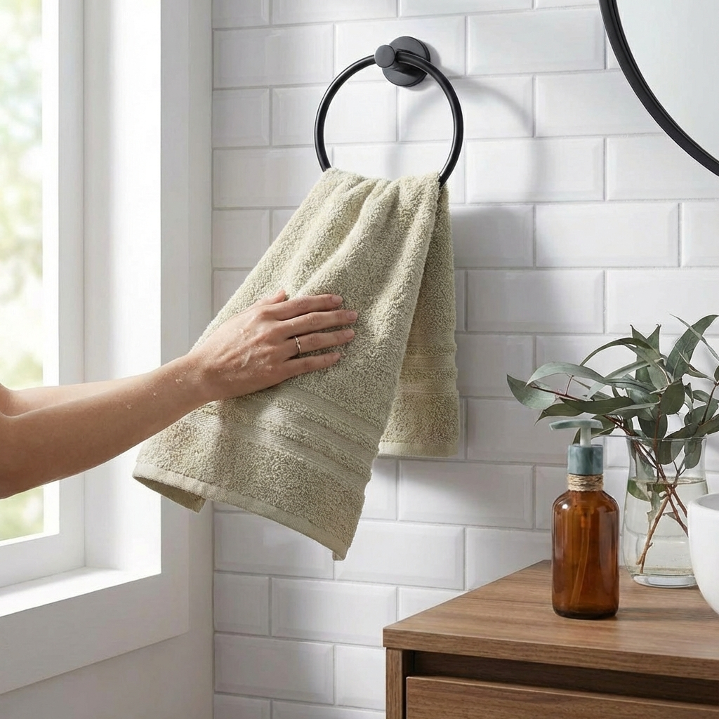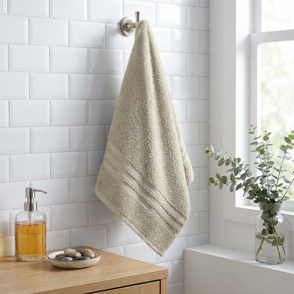 Con unas medidas de 50x70cm, es una gran opción para quienes buscan una toalla compacta y fácil de guardar. Disponible en diferentes colores, es perfecto para complementar la decoración de tu baño.