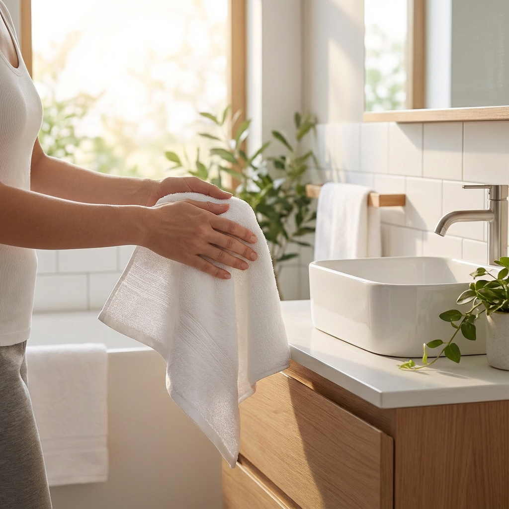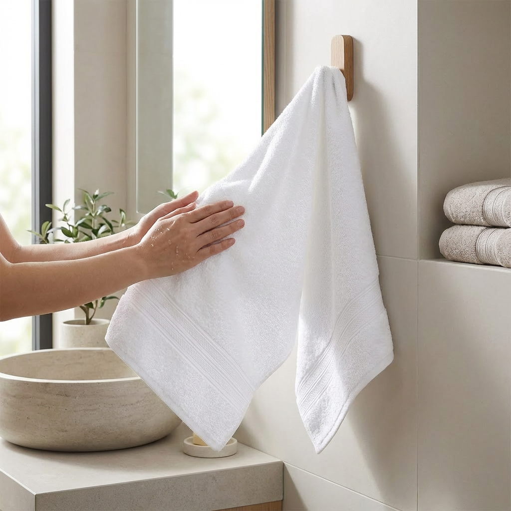 Con unas medidas de 50x70cm, es una gran opción para quienes buscan una toalla compacta y fácil de guardar. Disponible en diferentes colores, es perfecto para complementar la decoración de tu baño.