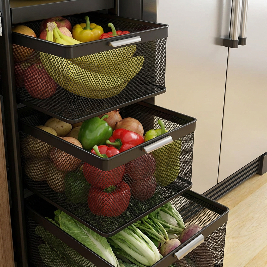- Canastos con malla hueca transpirable para mantener frescos los alimentos.