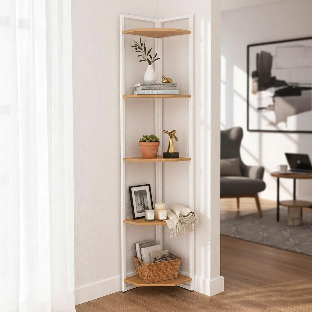 Con sus 5 estantes amplios y bien distribuidos, es ideal para organizar libros, plantas, adornos, portarretratos o cualquier objeto decorativo. Su formato vertical permite optimizar el espacio, incluso en ambientes pequeños.