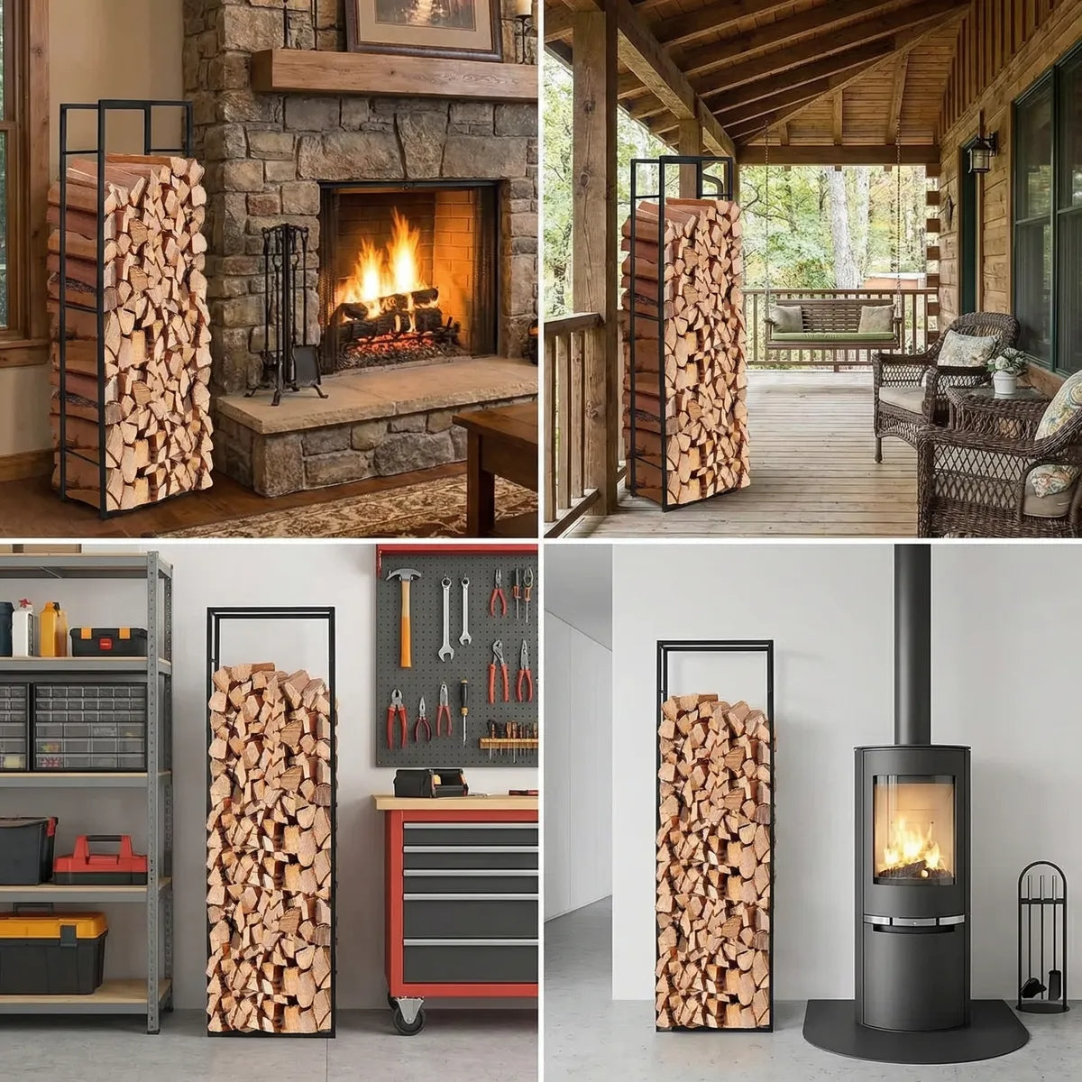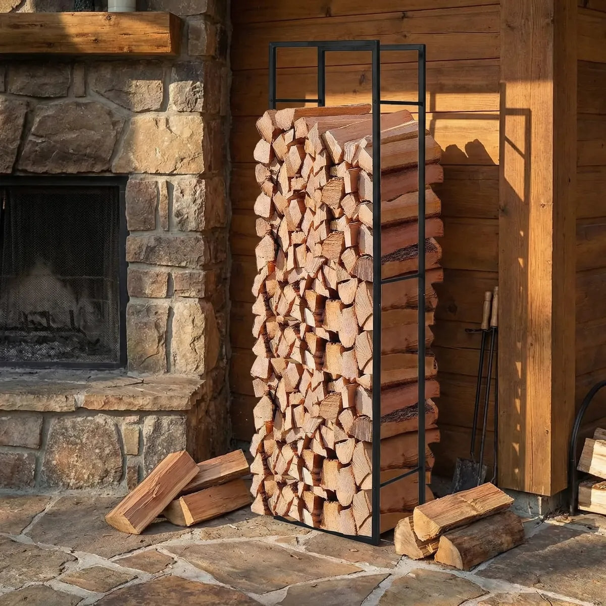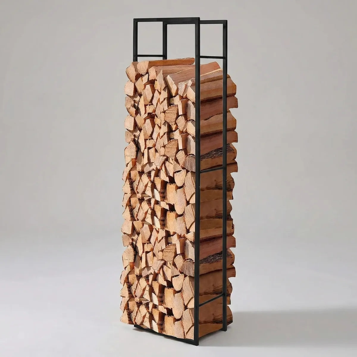 Estante para leña de 45 x 30 x 172 cm, fabricado en hierro resistente, ideal para almacenar gran cantidad de leña de forma vertical y ordenada.