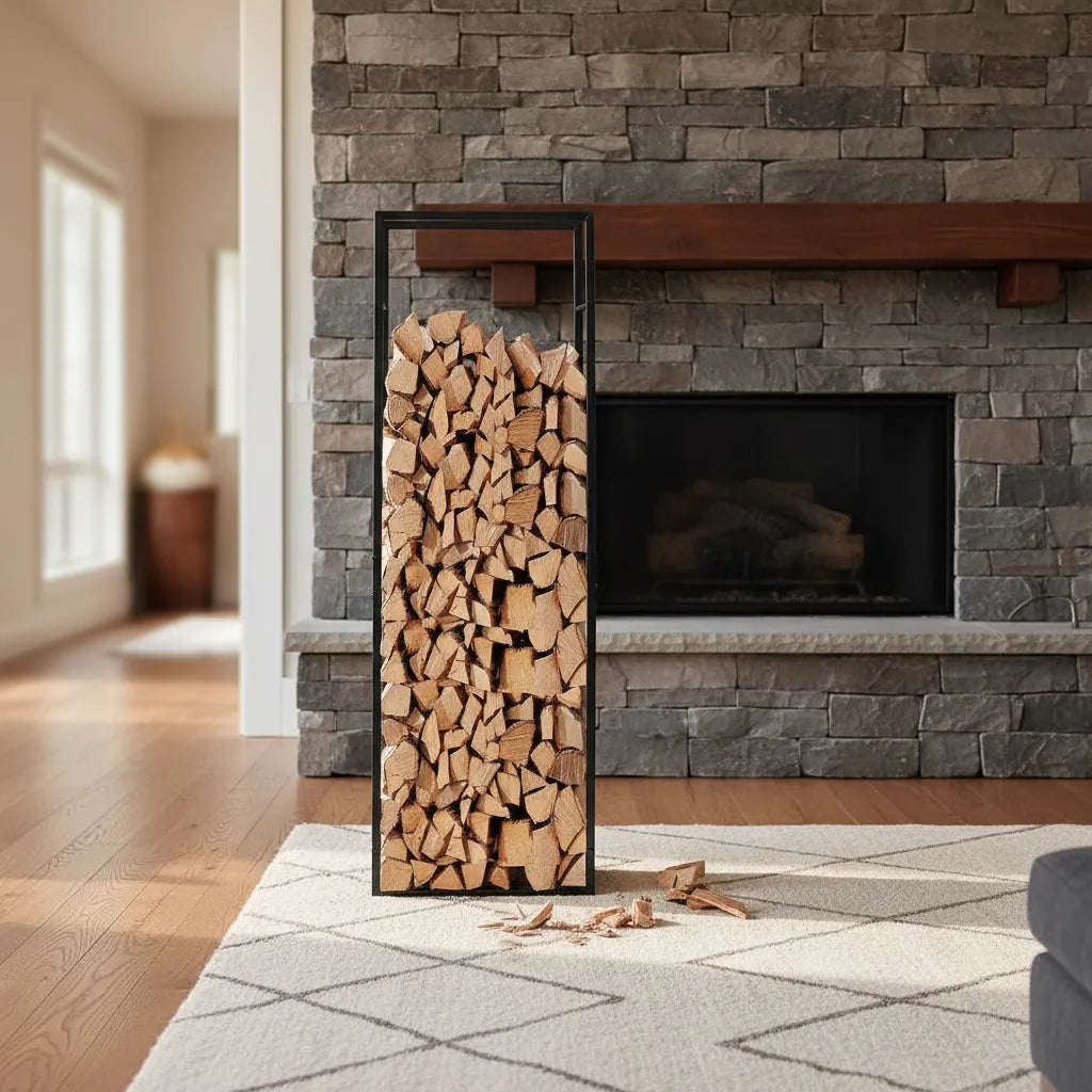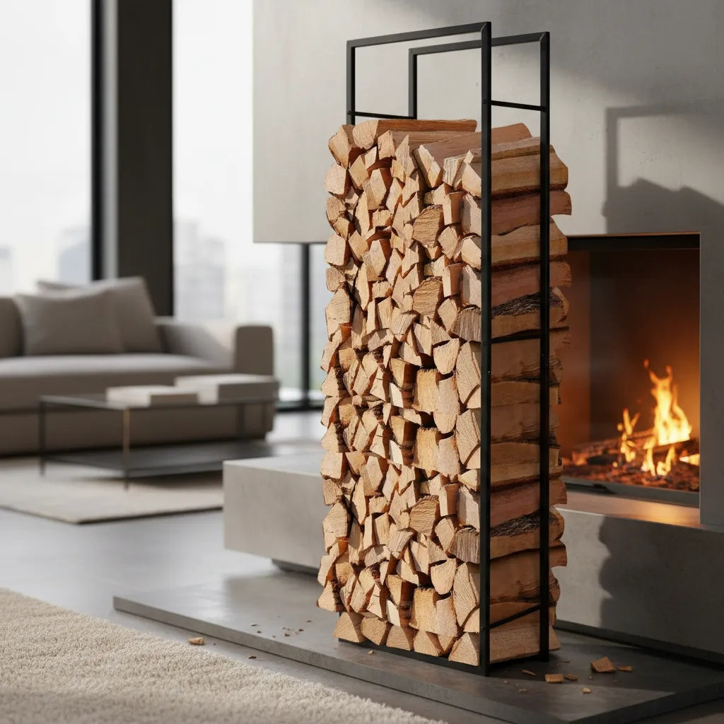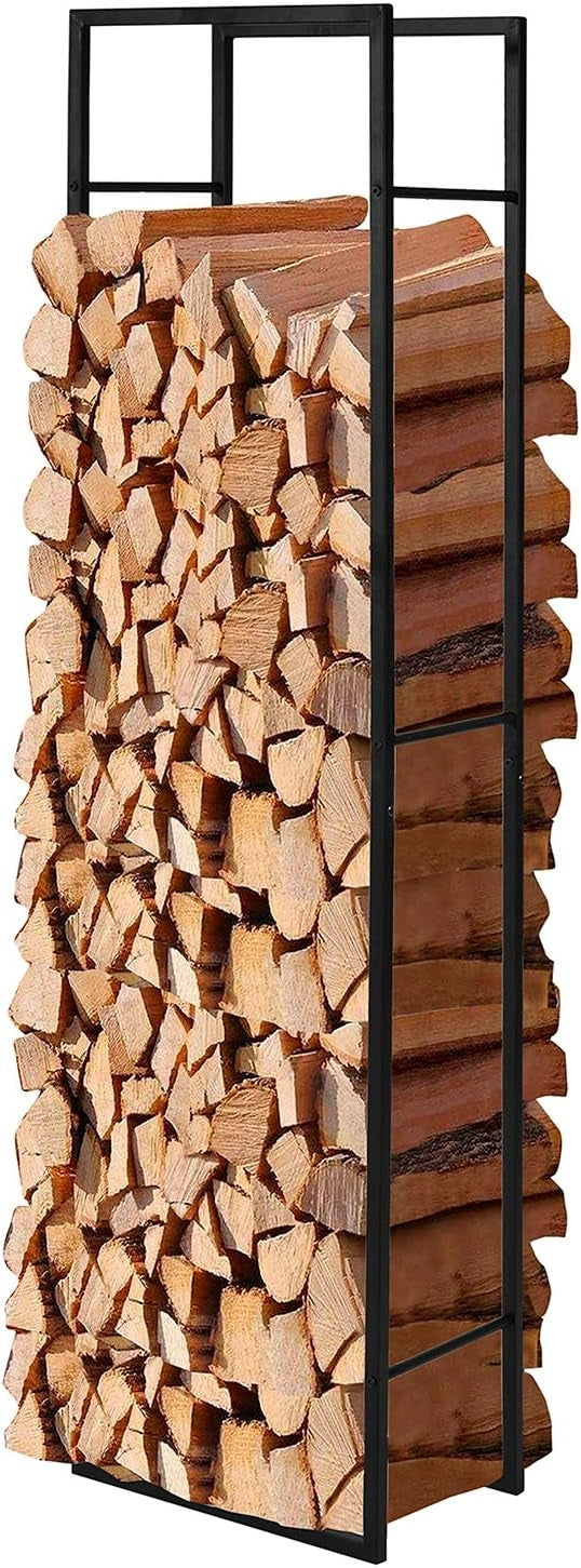 Estante para leña de 45 x 30 x 172 cm, fabricado en hierro resistente, ideal para almacenar gran cantidad de leña de forma vertical y ordenada.