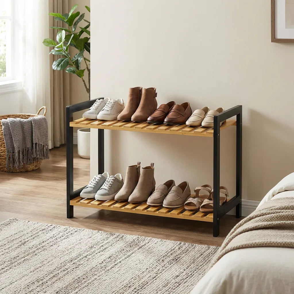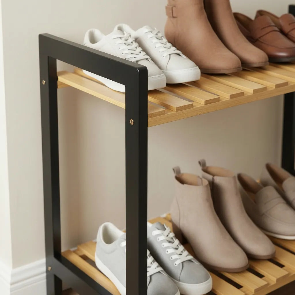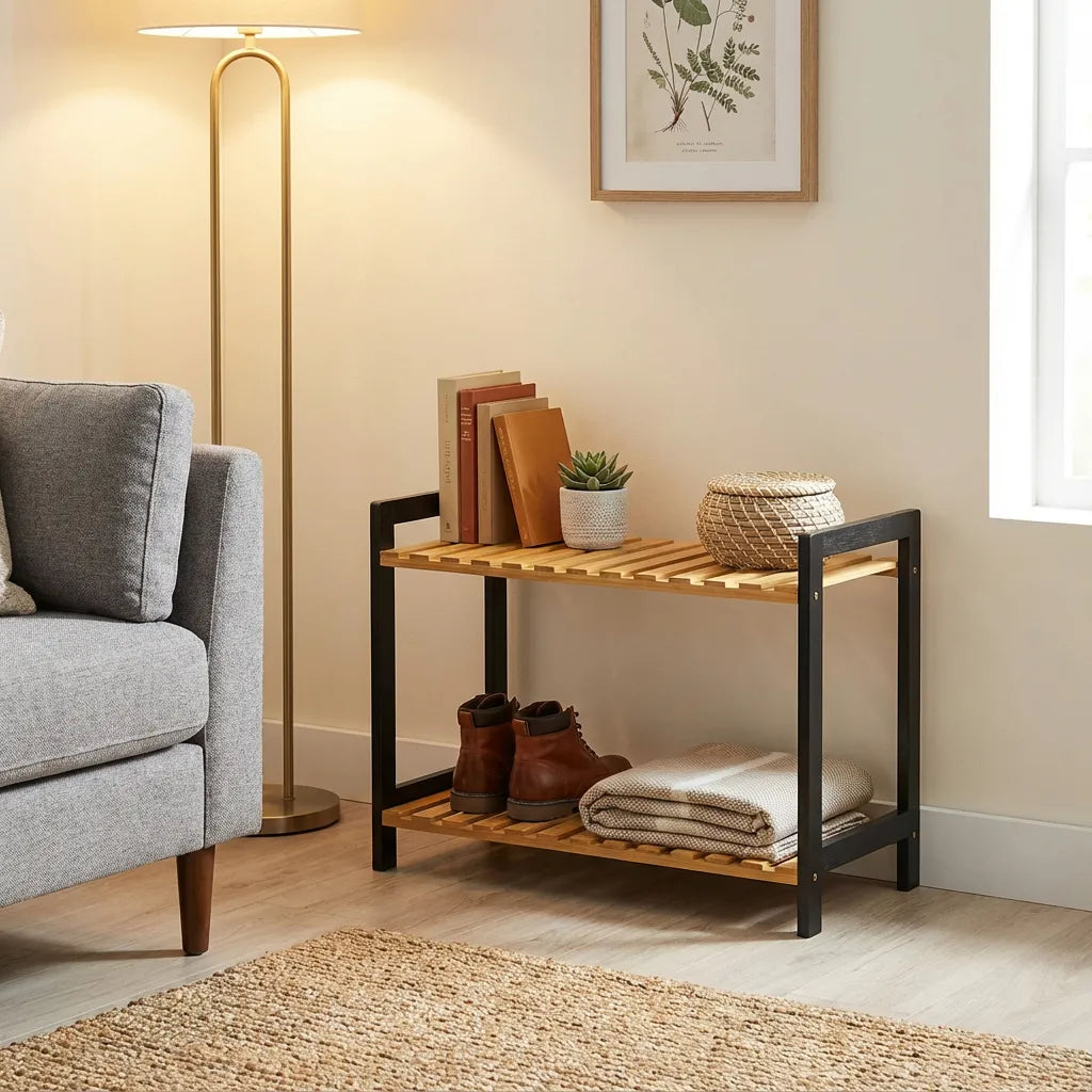 Perfecta para organizar zapatos, libros, plantas, o cualquier objeto decorativo, esta estantería no solo optimiza el espacio, sino que también se convierte en un punto focal en la decoración de tu hogar. Dale un nuevo aire a tus ambientes con esta pieza que combina diseño y funcionalidad.