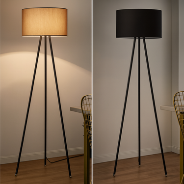 - Pantalla de tela negra que suaviza la luz y crea un ambiente acogedor.