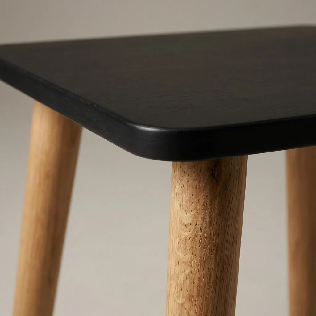 Mesa cuadrada Noa, ideal para usar como mesa auxiliar en living, dormitorio u otros ambientes del hogar. Su diseño con patas en símil roble aporta un estilo moderno y luminoso, fácil de combinar con distintos estilos de decoración.